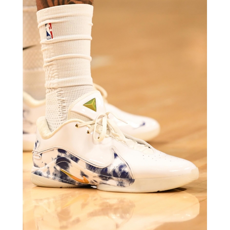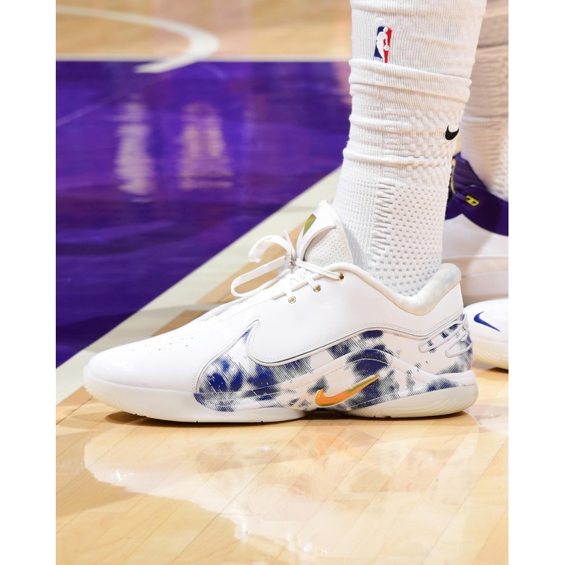 This design has a gem-like glow—a bright-white upper with neon accents paired with a glow-in-the dark outsole at the forefoot. It reflects how the King embraces the pressures of being a professional athlete and a parent to win in all facets of his life.