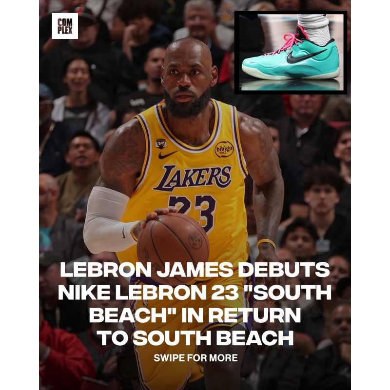 LeBron James debuts a “South Beach” colorway of the Nike LeBron 23 during tonight’s game against the Heat in South Beach, recording a triple-double stat line in the road win against his former team. Is the LeBron 8 “South Beach” the BEST Miami-themed silhouette and colorway in LeBron’s signature line? 💭