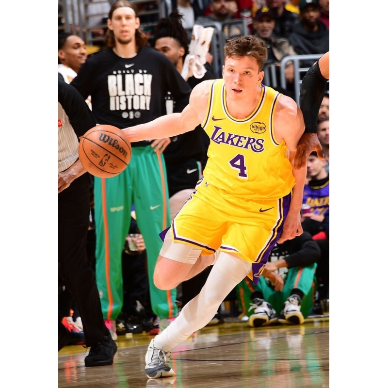 Dalton Knecht from Los Angeles Lakers last game against San Antonio Spurs played in Jordan 40 Wolf Grey basketball shoes.