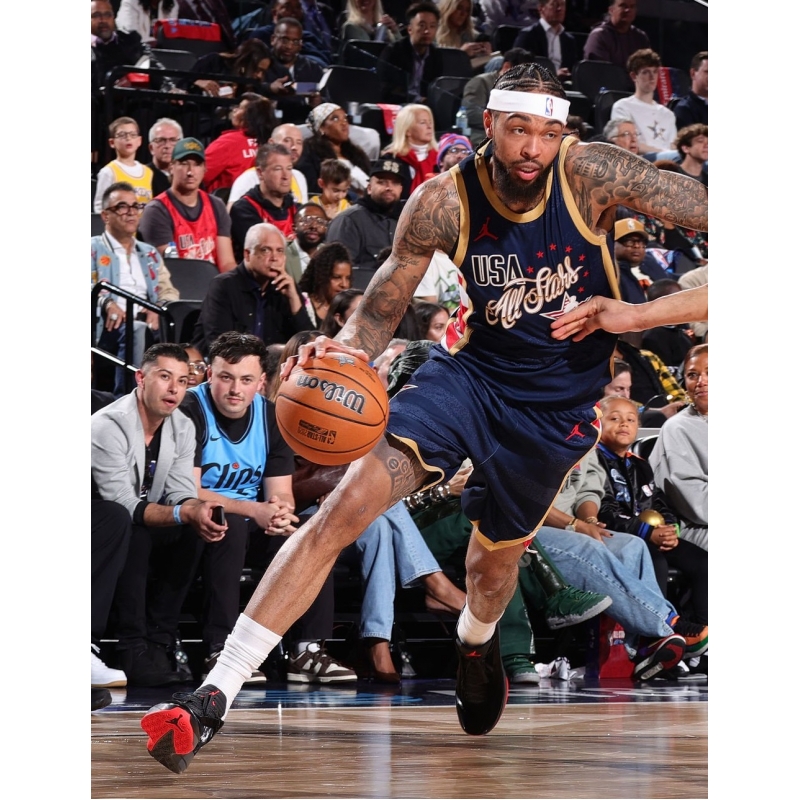 Brandon Ingram from 2026 NBA All-Star Stripes last game against 2026 NBA All-Star World played in Air Jordan 40 Infrared basketball shoes.