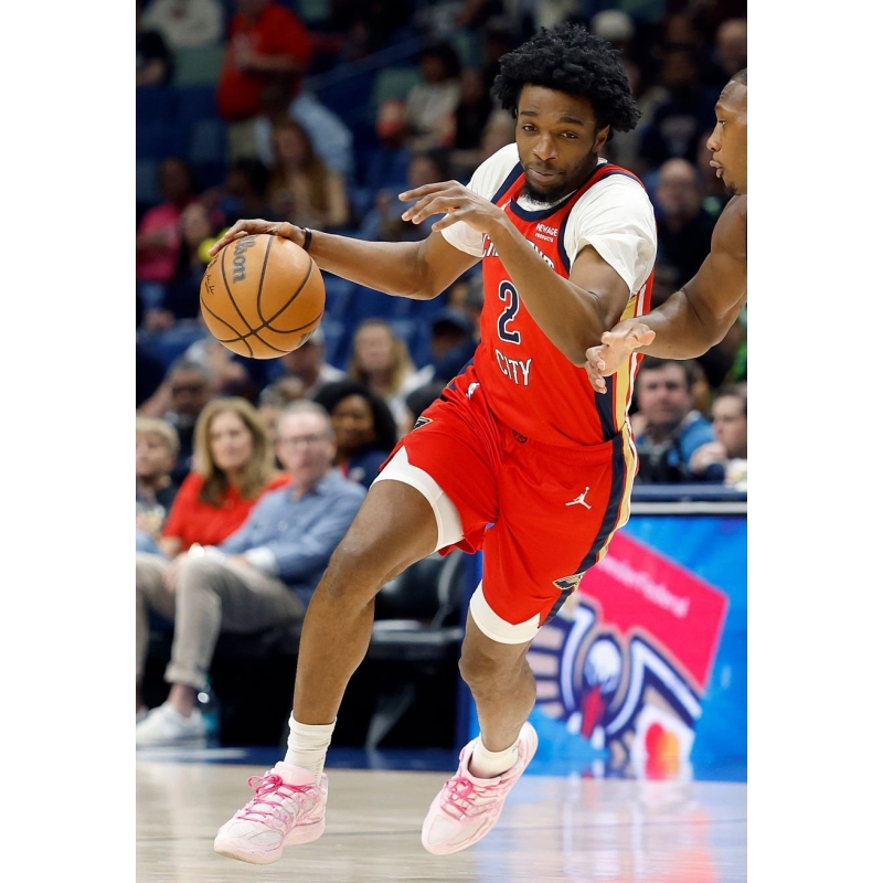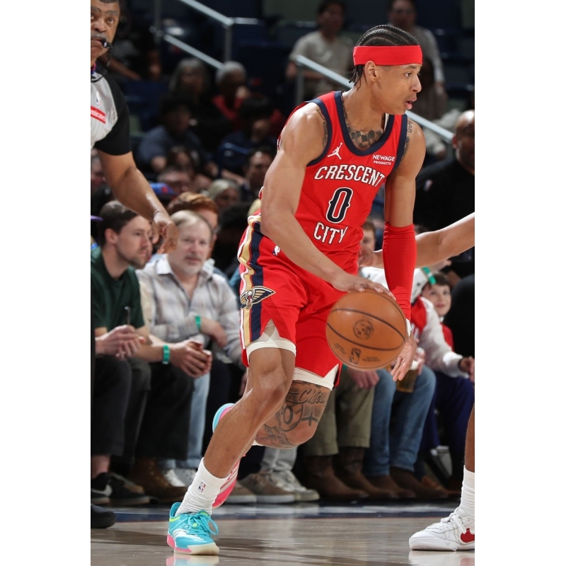 Herbert Jones from New Orleans Pelicans last game against Los Angeles Clippers played in Nike KD 18 Aunt Pearl basketball shoes.