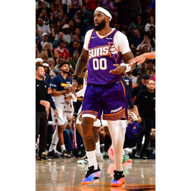 Royce O'Neale from Phoenix Suns last game against Denver Nuggets played in adidas D.O.N. Issue 7 All-Star basketball shoes.