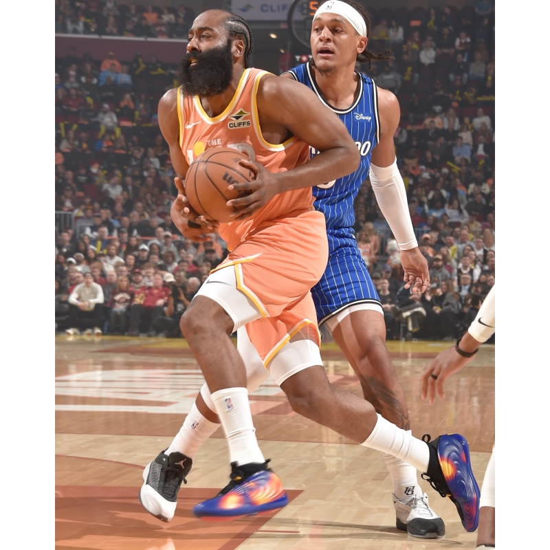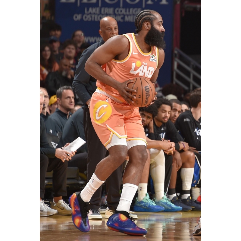 James Harden from Cleveland Cavaliers last game against Orlando Magic played in adidas Harden Vol. 10 McDonald’s All American basketball shoes.