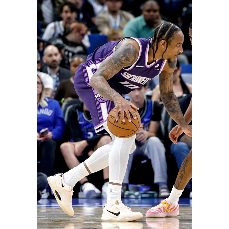 DeMar DeRozan from Sacramento Kings last game against Orlando Magic played in Nike Kobe 8 EYBL Academy PE basketball shoes.