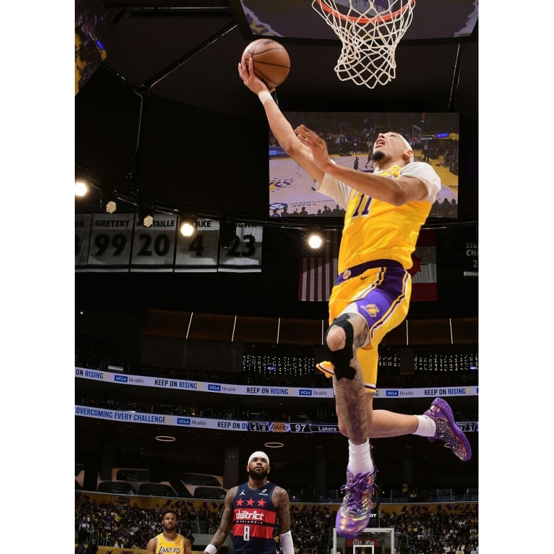 Tre Johnson from Washington Wizards last game against Los Angeles Lakers played in Nike Kobe 6 Protro Dodgers basketball shoes.