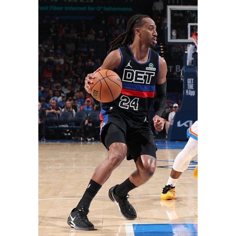 Marcus Sasser from Detroit Pistons last game against Oklahoma City Thunder played in Jordan Tatum 3 Black History Month PE basketball shoes.