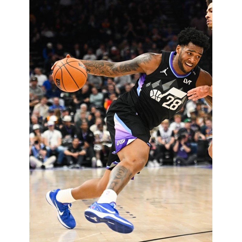 Brice Sensabaugh from Utah Jazz last game against Cleveland Cavaliers played in Nike Kobe 6 Protro Dodgers basketball shoes.