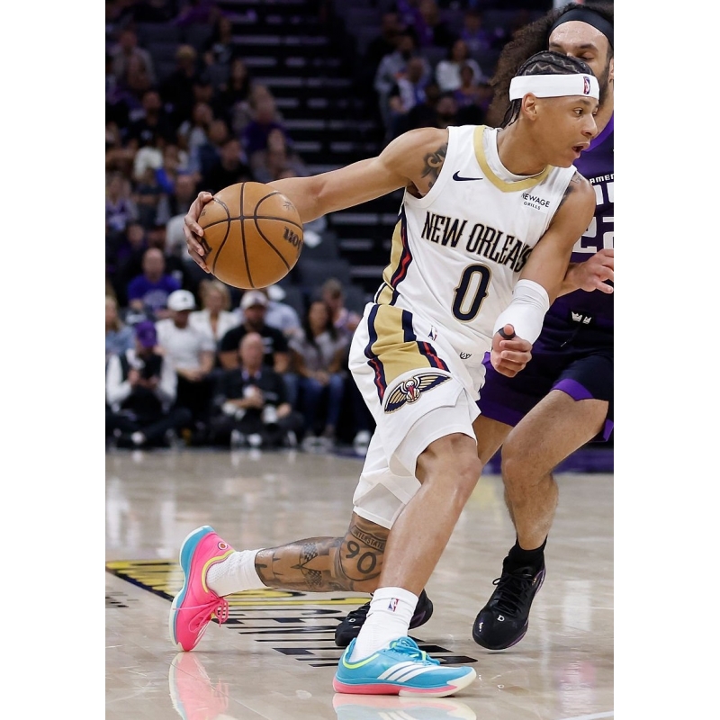 Jeremiah Fears from New Orleans Pelicans last game against Sacramento Kings played in adidas adizero Select 3.0 McDonald’s All American basketball shoes.