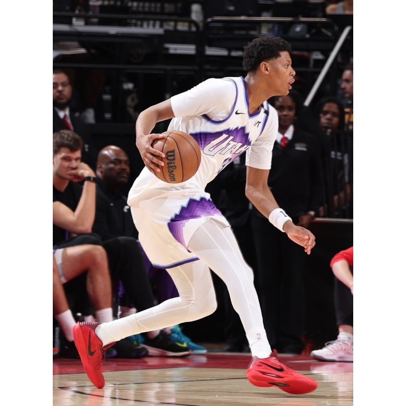 Ace Bailey from Utah Jazz last game against Houston Rockets played in Nike Air Zoom G.T. Cut 3 Turbo ACE basketball shoes.