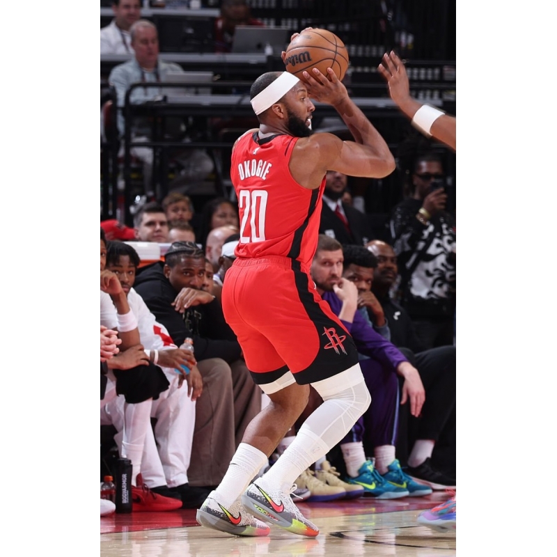 Josh Okogie from Houston Rockets last game against Utah Jazz played in Nike Air Zoom G.T. Cut 3 basketball shoes.