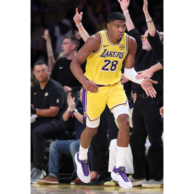 Rui Hachimura from Los Angeles Lakers last game against Houston Rockets played in Air Jordan 40 PE basketball shoes.