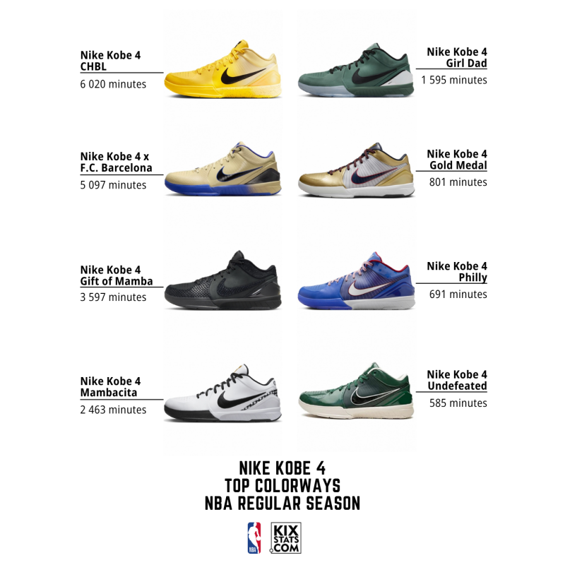 Check out the top 8 kicks by minutes played—sorted by colorways—at the #4 spot during NBA regular season!👀🔥