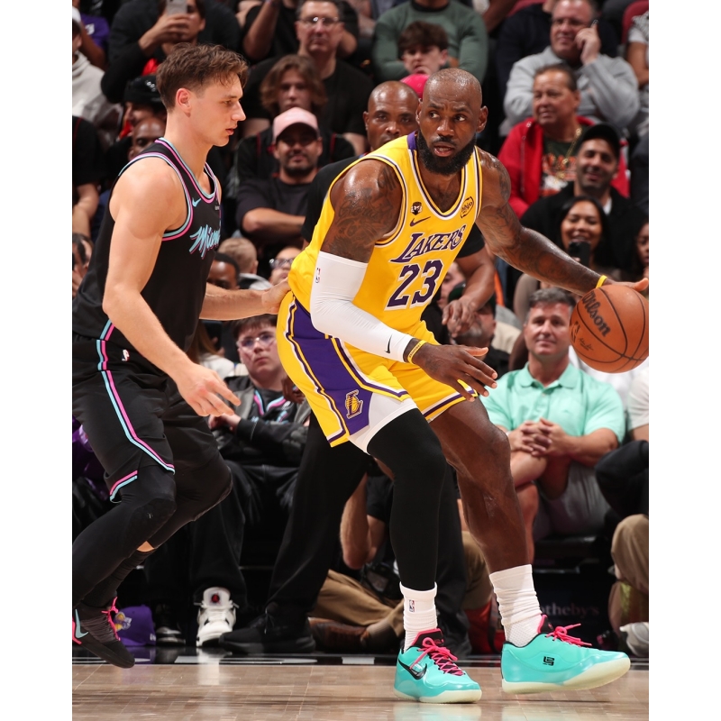 LeBron James debuts a “South Beach” colorway of the Nike LeBron 23 during tonight’s game against the Heat in South Beach, recording a triple-double stat line in the road win against his former team. Is the LeBron 8 “South Beach” the BEST Miami-themed silhouette and colorway in LeBron’s signature line? 💭