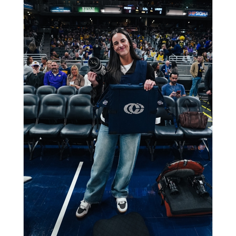 Caitlin Clark pulled up to the Lakers vs. Pacers game as a team photographer and straight up cooked 📸🔥 Caitlin was rockin’ Travis Scott’s “Sail” Jordan Jumpman Jack while sitting on a custom photo chair featuring her Nike signature logo 👀