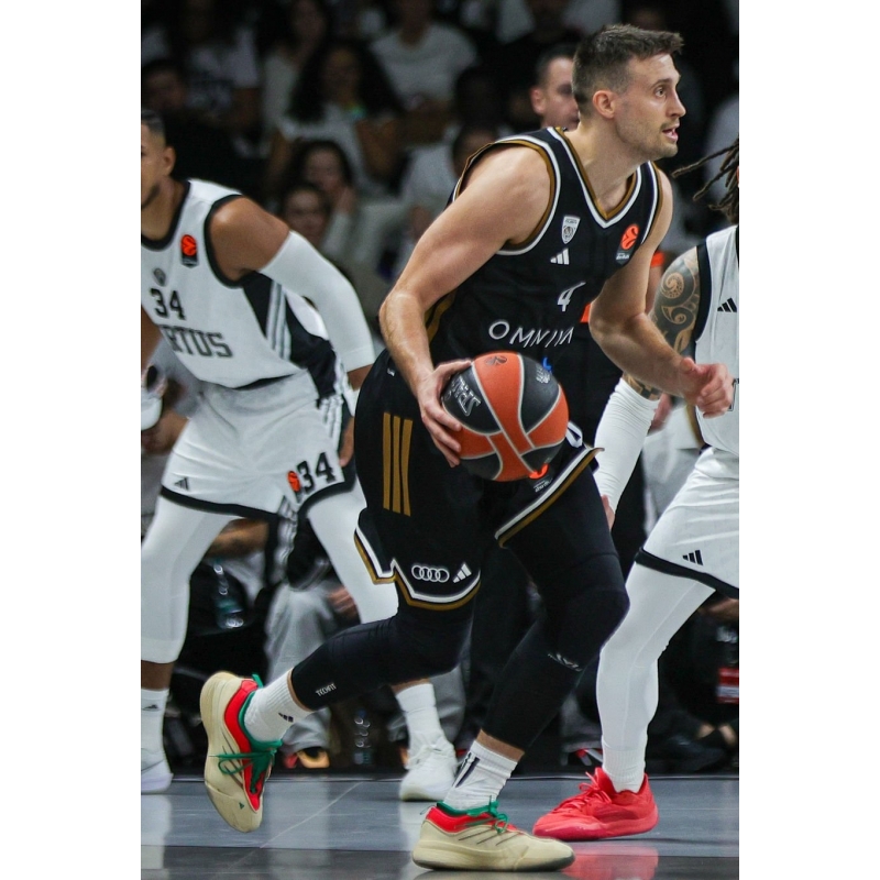 Aleksa Avramovic from Dubai Basketball last game against Bologna Virtus played in adidas Dame 9 basketball shoes.