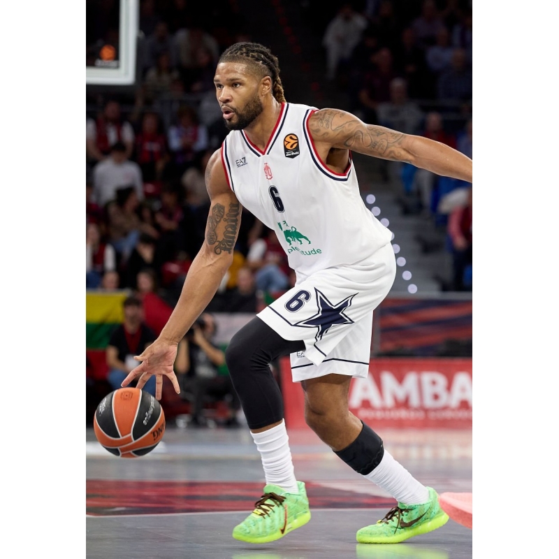 Shavon Shields from Milan EA7 Emporio Armani last game against Vitoria-Gasteiz Cazoo Baskonia played in adidas Dame x basketball shoes.