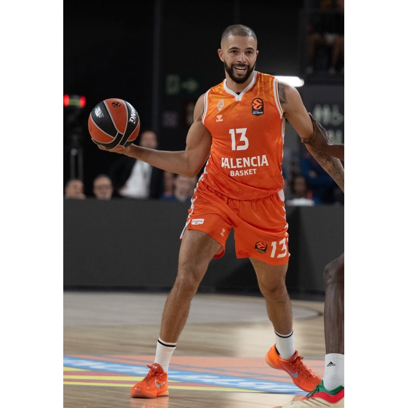 Darius Thompson from Valencia Basket last game against Bologna Virtus played in Nike Kobe 6 Protro Total Orange basketball shoes.