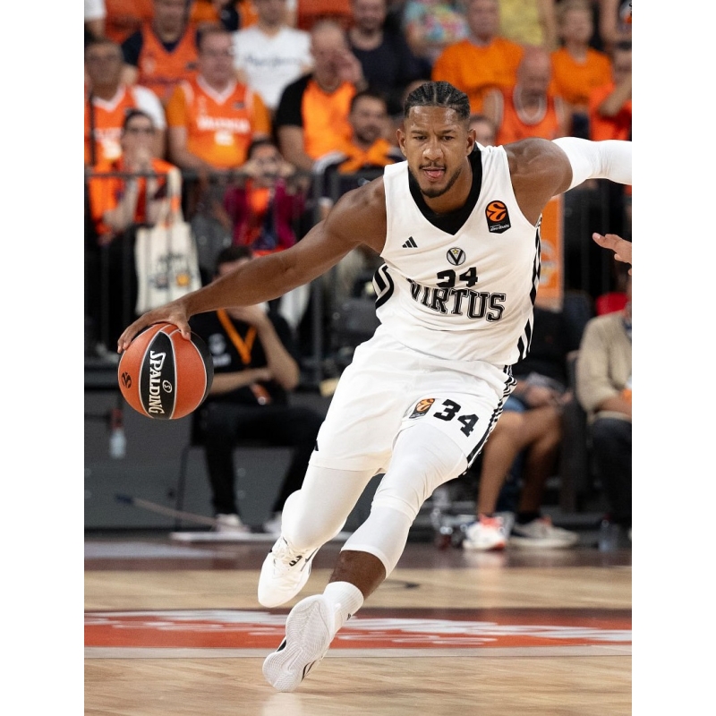 Karim Jallow from Bologna Virtus last game against Valencia Basket played in Nike A'One basketball shoes.