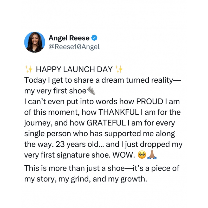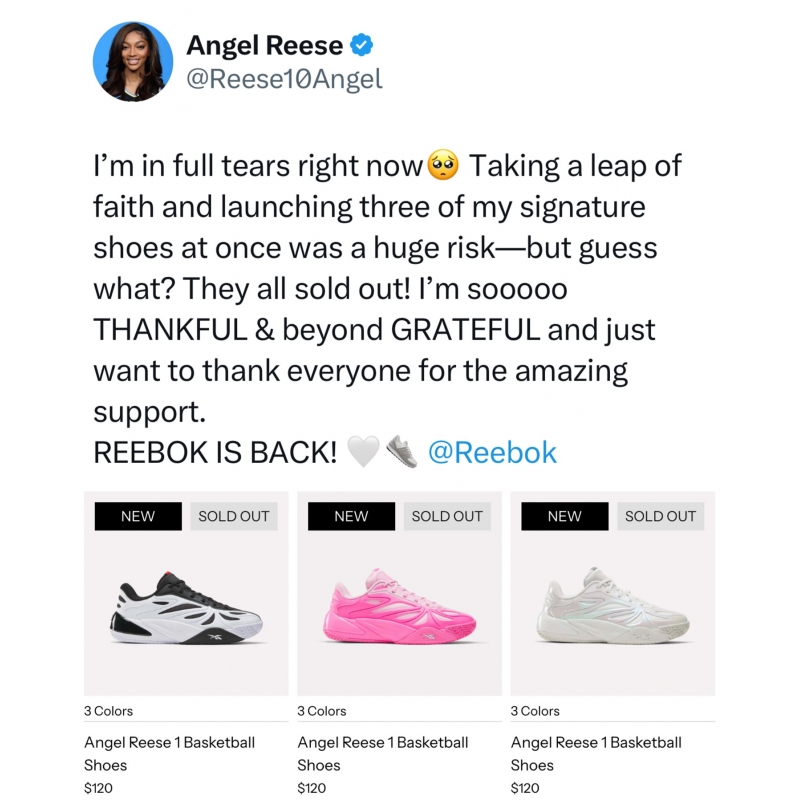 Angel Reese and Reebok have officially unveiled her first signature shoe, the Angel Reese 1 😇 Angel becomes the fourth active WNBA signature athlete and second woman ever to have a Reebok signature sneaker 👏 The shoe is expected to launch in the “Diamond Dust” colorway in 2026 💎