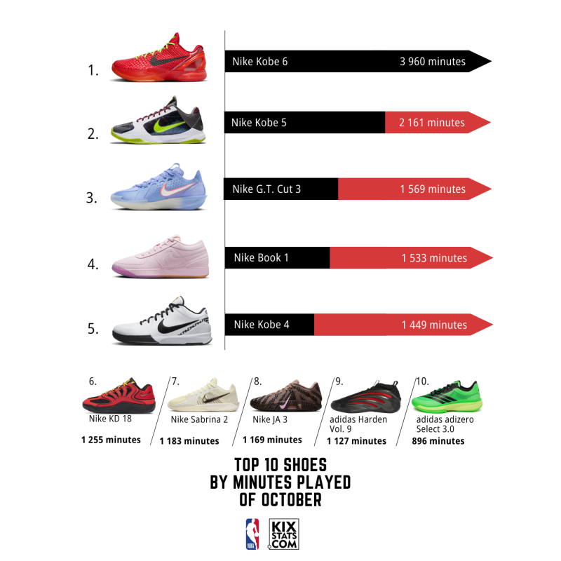 NBA regular season has already started! 🏀Take a look at TOP 10 kicks by minutes played during month of October! 👀
