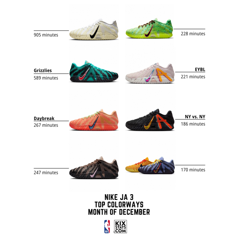 Check out the top 8 kicks by minutes played—sorted by colorways—at the #3 spot in December!👀🔥