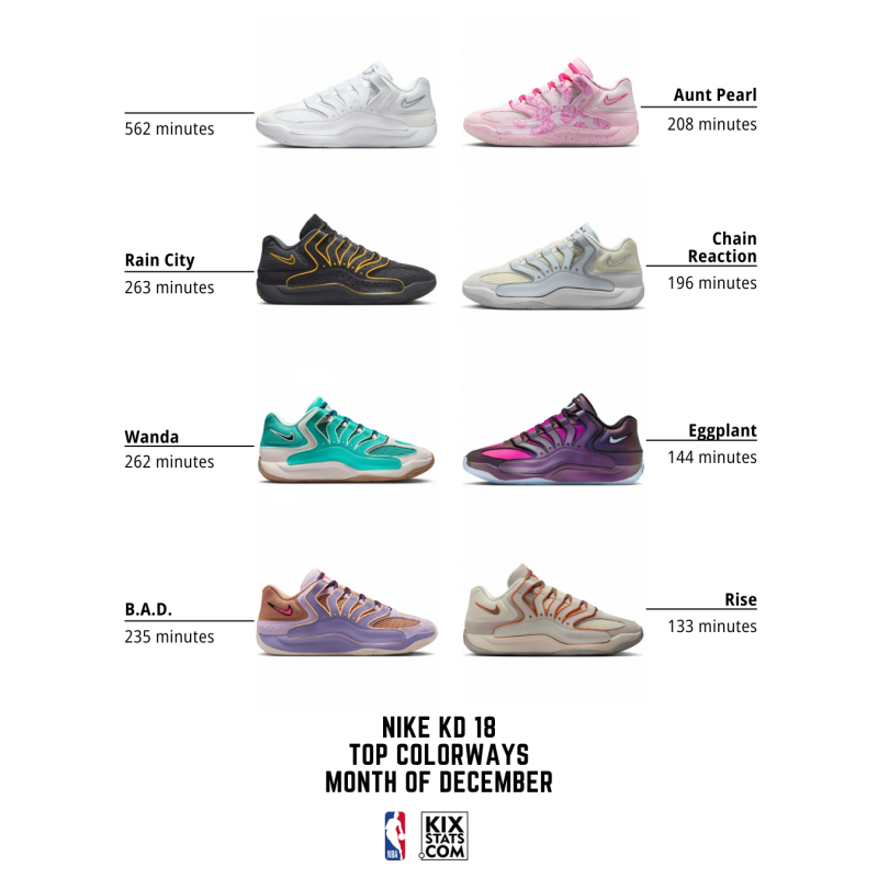 Check out the top 8 kicks by minutes played—sorted by colorways—at the #4 spot in December!👀🔥