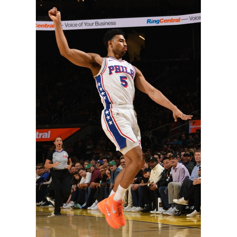 Quentin Grimes from Philadelphia 76ers last game against Golden State Warriors played in Nike Kobe 6 Protro Total Orange basketball shoes.