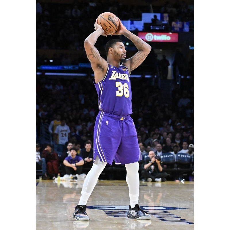 Marcus Smart from Los Angeles Lakers last game against Philadelphia 76ers played in Puma All-Pro Nitro 2 E.T. basketball shoes.