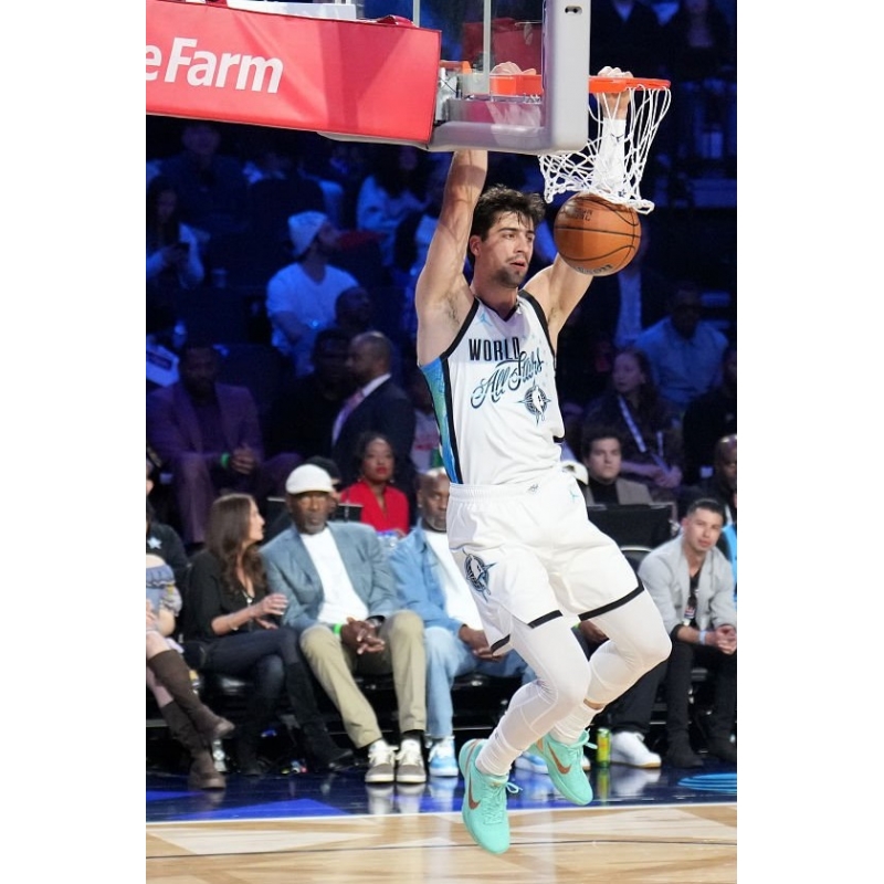 Deni Avdija from 2026 NBA All-Star World last game against 2026 NBA All-Star Stars played in Nike Kobe 6 Statue Of Liberty basketball shoes.