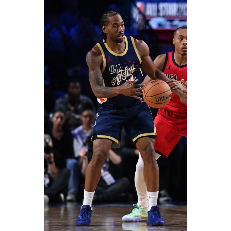 Kawhi Leonard from 2026 NBA All-Star Stripes last game against 2026 NBA All-Star World played in New Balance Kawhi 5 basketball shoes.