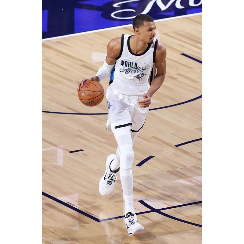 Victor Wembanyama from 2026 NBA All-Star World last game against 2026 NBA All-Star Stripes played in Nike G.T. Hustle 3 basketball shoes.