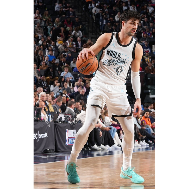 Deni Avdija from 2026 NBA All-Star World last game against 2026 NBA All-Star Stripes played in Nike Kobe 6 Statue Of Liberty basketball shoes.
