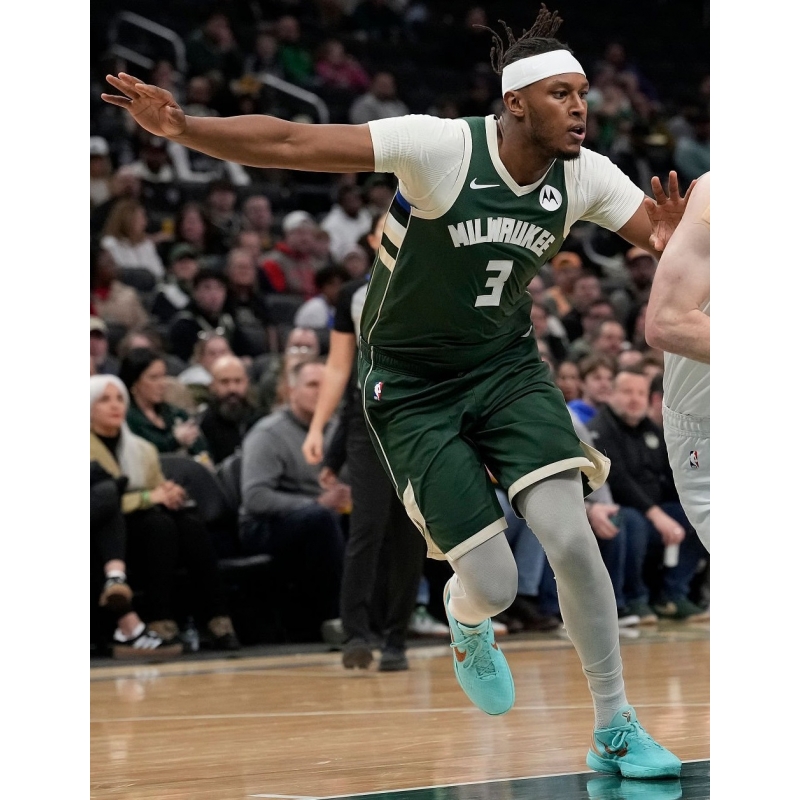 Myles Turner from Milwaukee Bucks last game against Cleveland Cavaliers played in Nike Kobe 6 Statue Of Liberty basketball shoes.