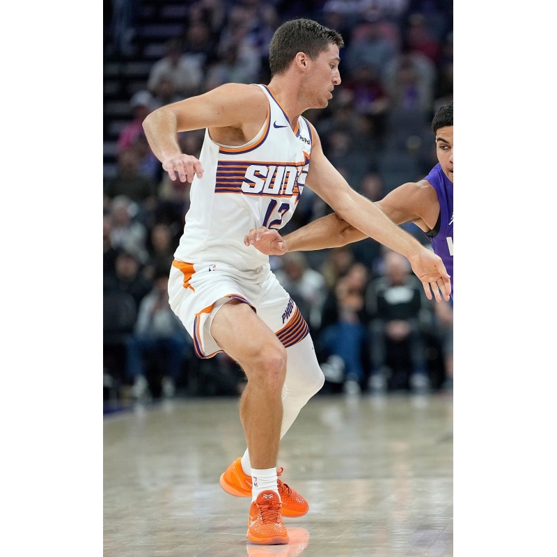 Collin Gillespie from Phoenix Suns last game against Sacramento Kings played in Nike Kobe 6 Protro Total Orange basketball shoes.