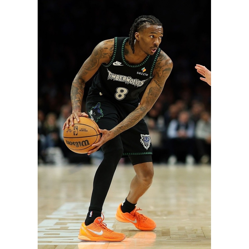 Bones Hyland from Minnesota Timberwolves last game against Memphis Grizzlies played in Nike Kobe 6 Protro Total Orange basketball shoes.