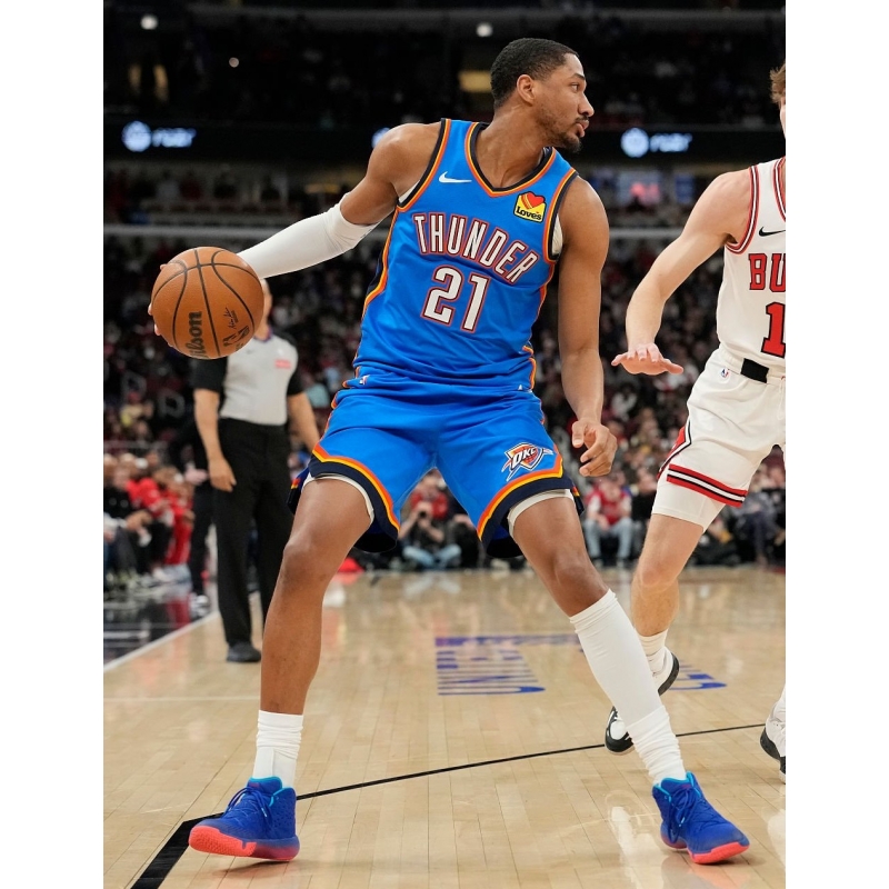 Jaylin Williams from Oklahoma City Thunder rebounded the most balls of the night (16) while played in Nike KD 18 Aunt Pearl basketball shoes.