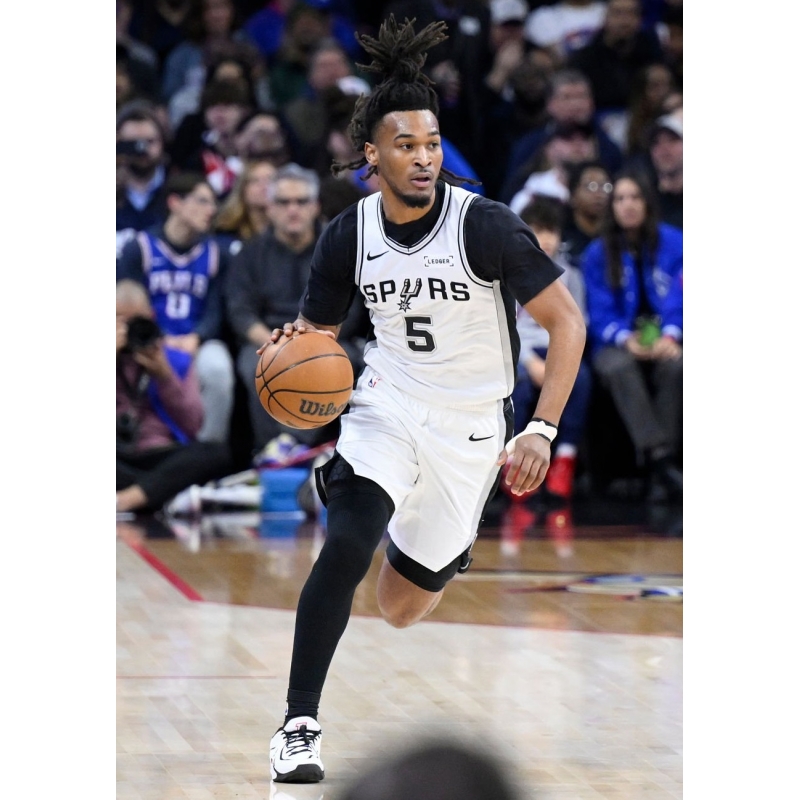 Stephon Castle from San Antonio Spurs last game against Philadelphia 76ers played in Jordan Tatum 4 basketball shoes.