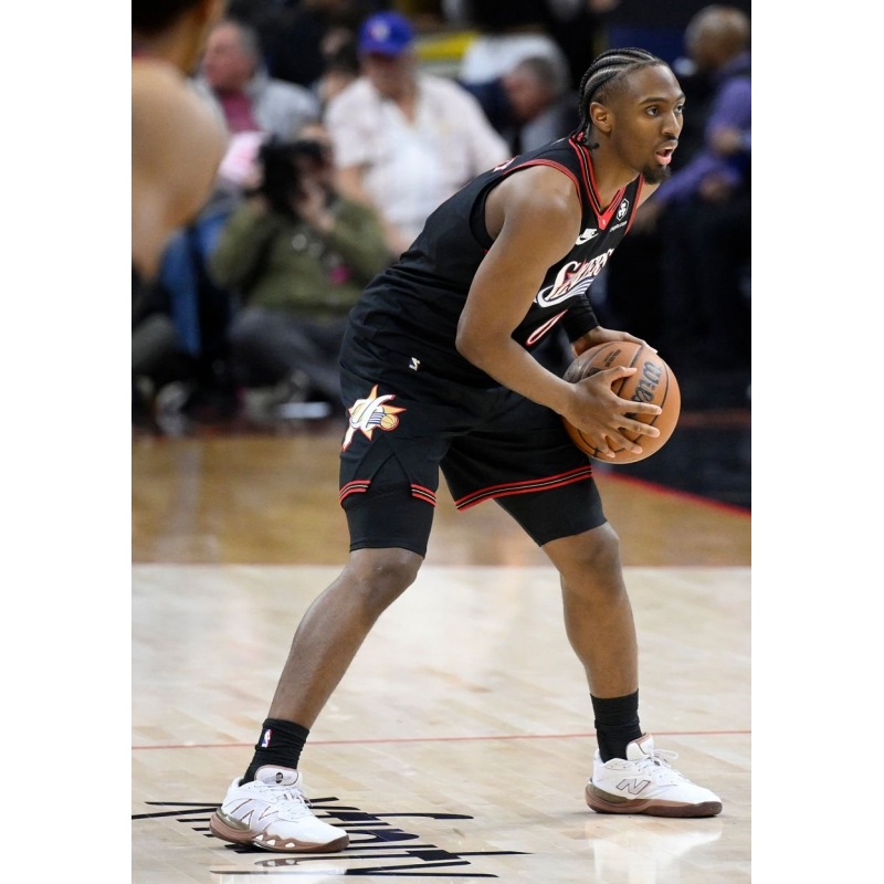 Tyrese Maxey from Philadelphia 76ers last game against San Antonio Spurs played in New Balance Hesi Low V2 basketball shoes.