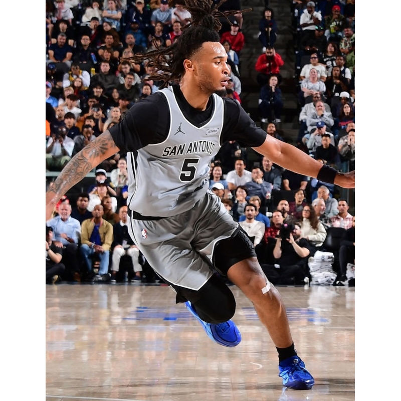 Stephon Castle from San Antonio Spurs last game against Los Angeles Clippers played in Jordan Tatum 4 basketball shoes.