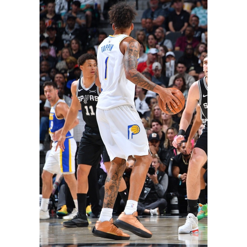 Obi Toppin from Indiana Pacers last game against San Antonio Spurs played in Jordan 40 SL Metallic Copper basketball shoes.