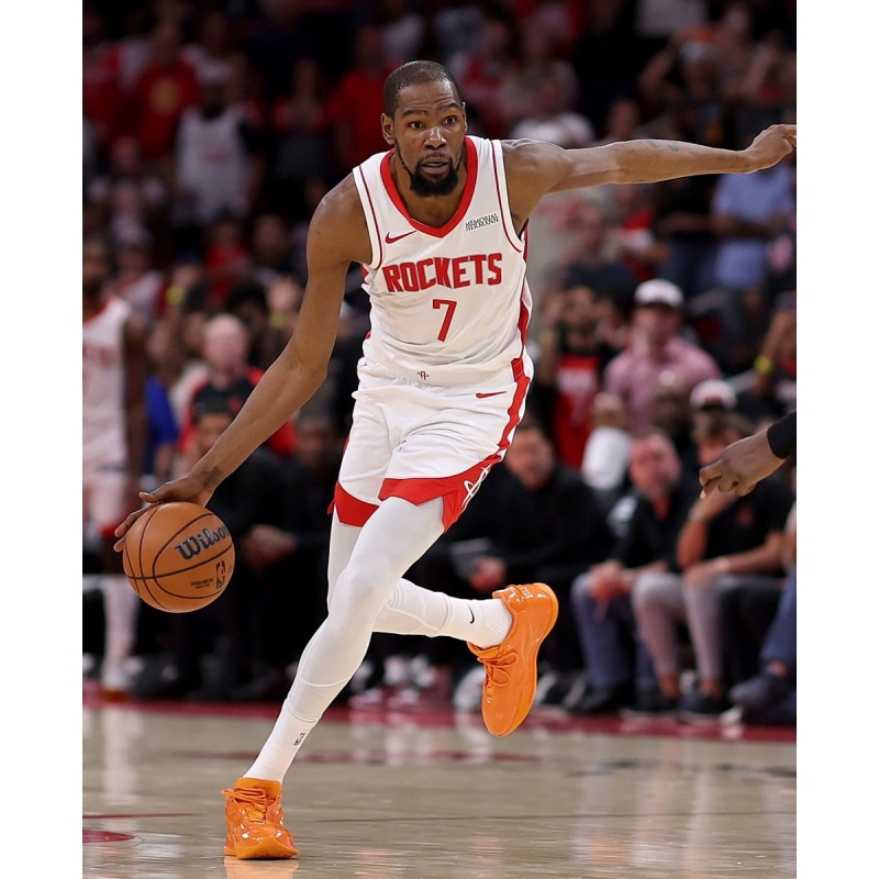 Kevin Durant from Houston Rockets last game against Miami Heat played in Nike KD 19 Bright Ceramic basketball shoes.