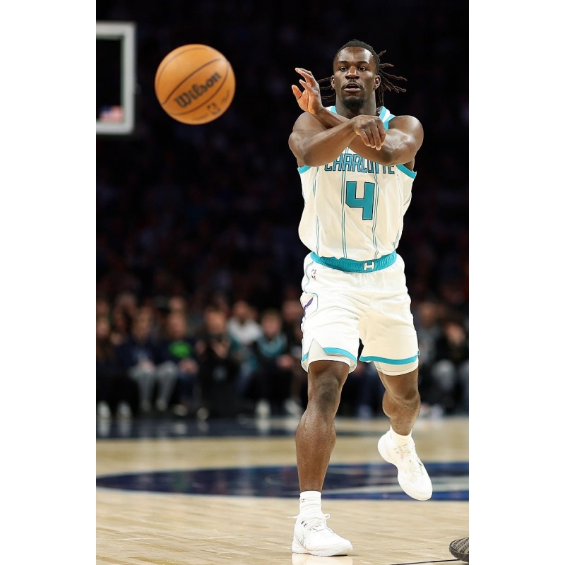 Sion James from Charlotte Hornets last game against Minnesota Timberwolves played in Nike LeBron NXXT Gen AMPD basketball shoes.
