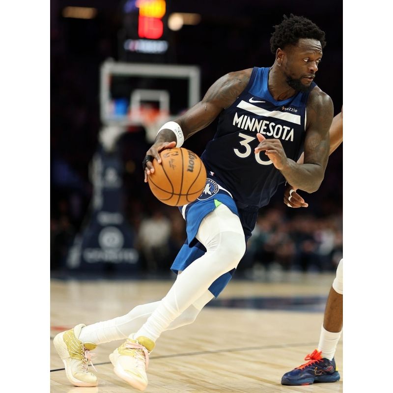 Julius Randle from Minnesota Timberwolves last game against Charlotte Hornets played in Skechers SKX Reign All-Star basketball shoes.