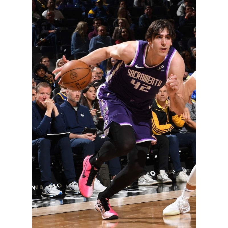 Maxime Raynaud from Sacramento Kings last game against Golden State Warriors played in Nike Kobe 6 Kay Yow 2026 basketball shoes.