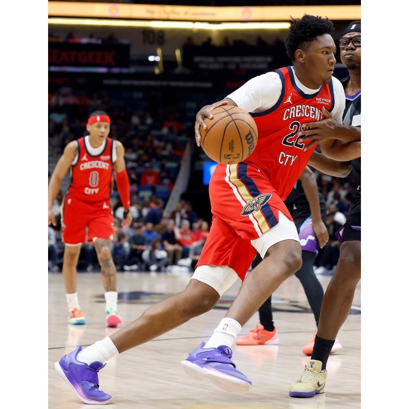 Micah Peavy from New Orleans Pelicans last game against Utah Jazz played in Nike Kobe 6 Protro Dodgers basketball shoes.