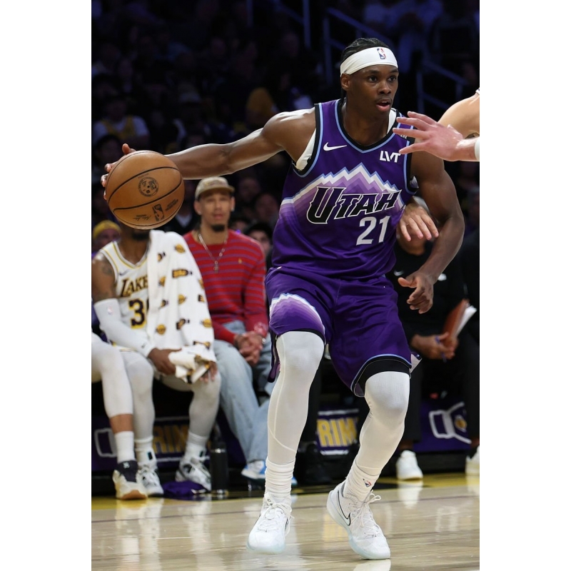 Bez Mbeng from Utah Jazz last game against Los Angeles Lakers played in Nike Air Zoom G.T. Cut 3 basketball shoes.