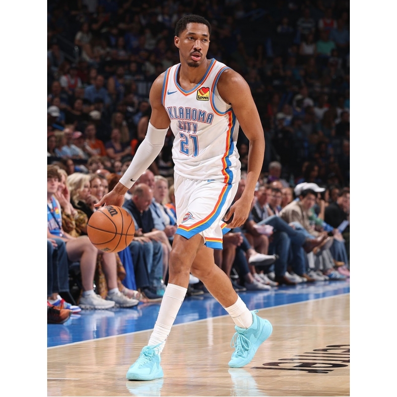 Jared McCain from Oklahoma City Thunder last game against Phoenix Suns played in Air Jordan 39 basketball shoes.