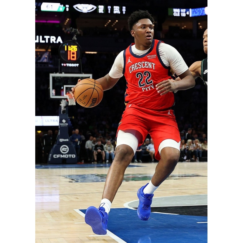 Derik Queen from New Orleans Pelicans last game against Minnesota Timberwolves played in Curry Fox 1 Lexington basketball shoes.