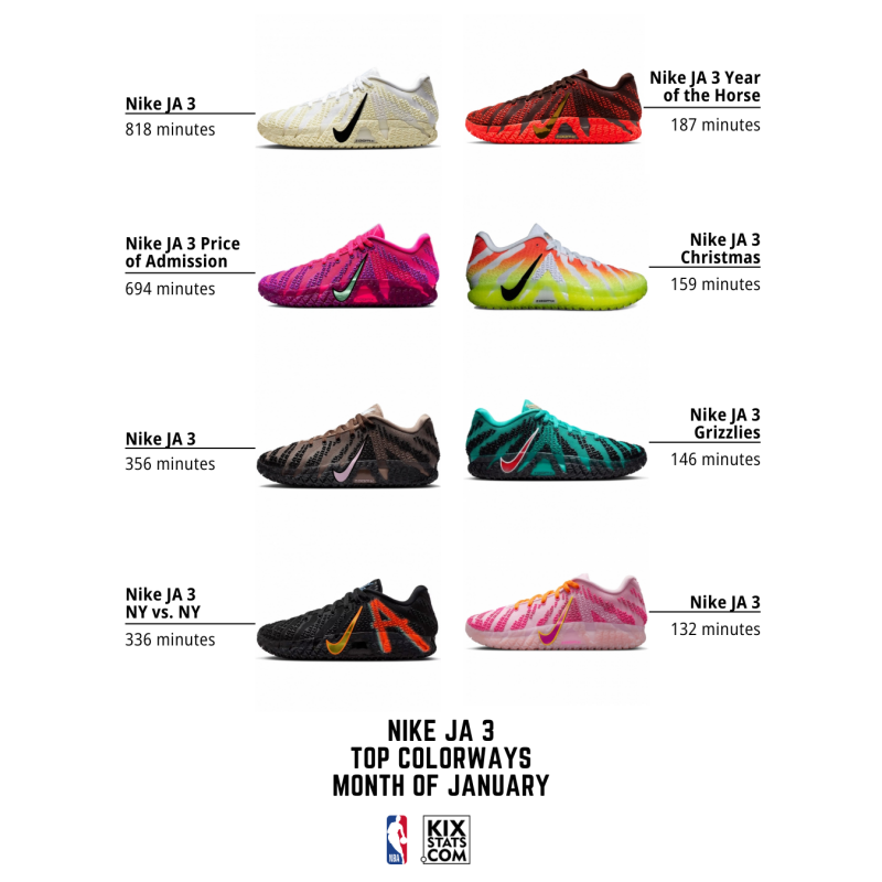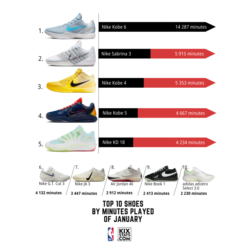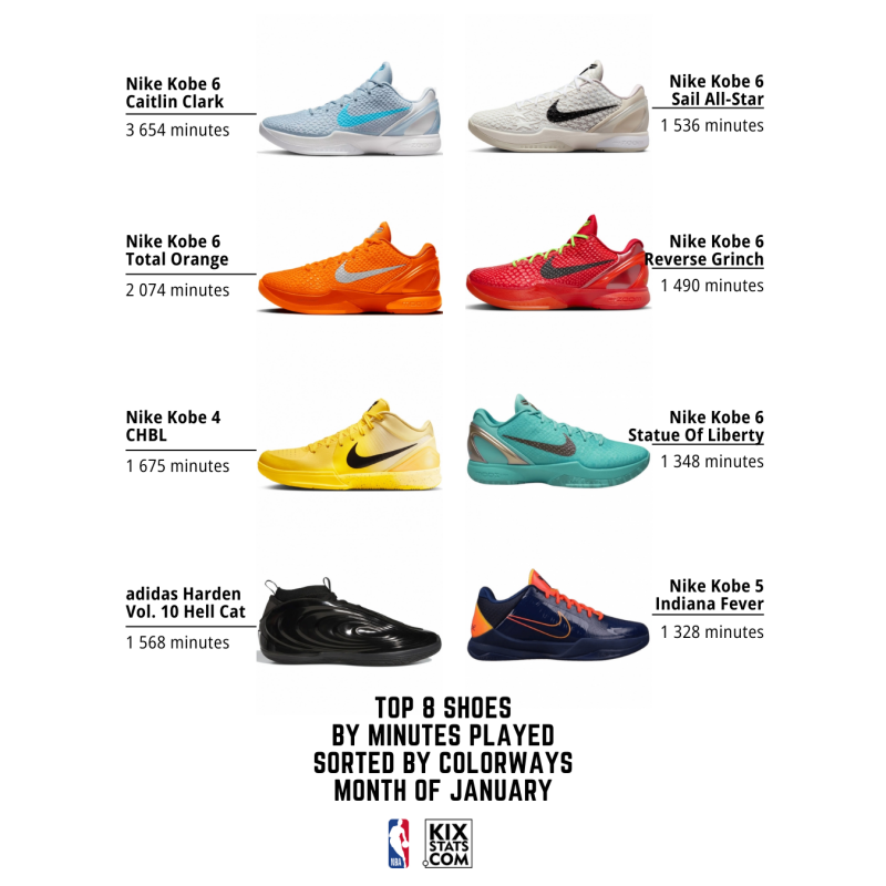 Check out the top 8 kicks by minutes played—sorted by colorways—from the #10–6 spots in January!👀🔥