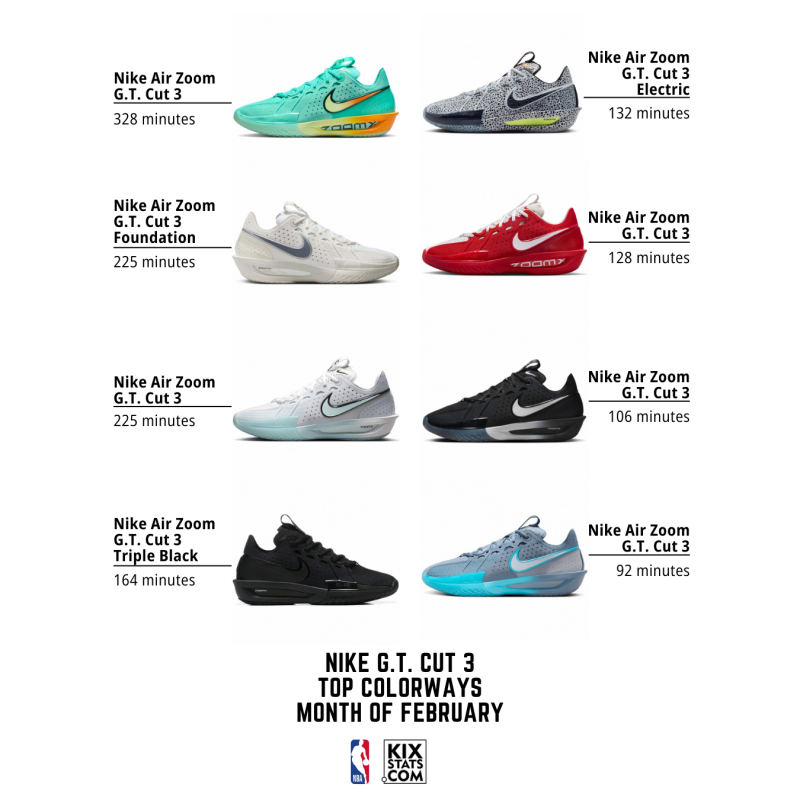 Check out the top 8 kicks by minutes played—sorted by colorways—from the #10–6 spots in February!👀🔥